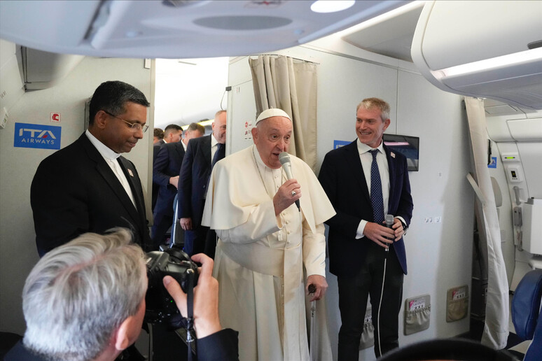 rispondendo,durante il volo Singapore-Roma,a una giornalista