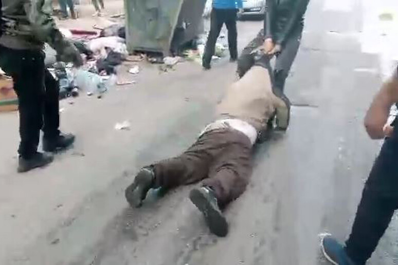 a terra. Un filmato mostra i corpi di tre uomini senza vita
