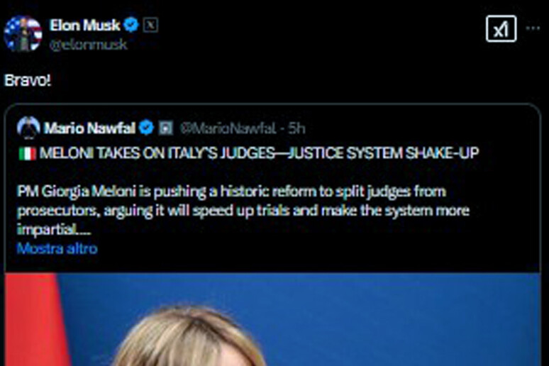 Musk plaude Meloni sulla riforma della giustizia