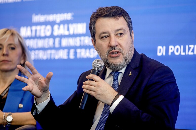 ministro delle Infrastrutture Matteo Salvini parlando a un